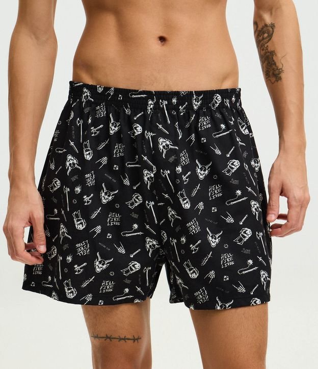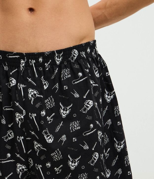 Cueca masculina modelo samba canção com cós elástico e estampa Stranger Things. Confeccionada em tricoline de algodão certificado BCI, garantindo conforto, leveza e moda responsável.