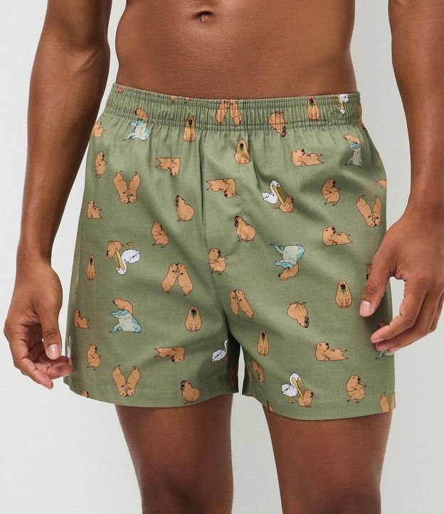 Cueca masculina confeccionada em tricoline mais sustentável, no modelo samba canção. Possui cós elástico e estampa de capivara.