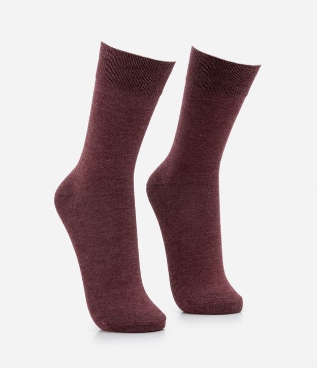 Meia cano alto em algodão e acrílico, com punho e padronagem mescla.