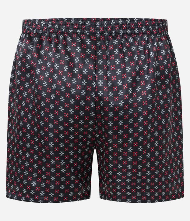 Cueca masculina confeccionada em cetim, no modelo samba canção, possui cós elástico estampa de mini ícones.