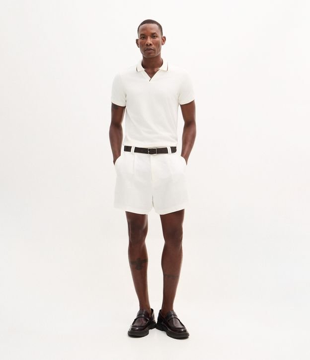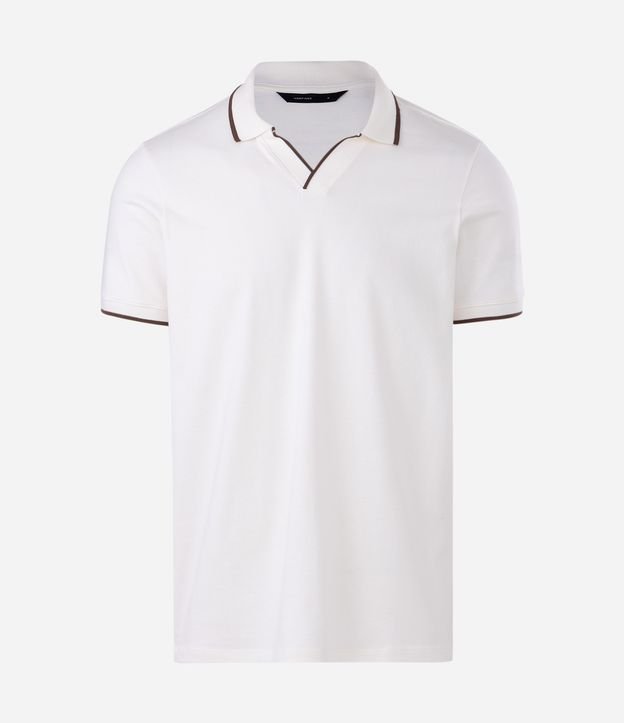 Camisa polo manga curta em meia malha com gola em V e filetes contrastantes que destacam o visual. Possui caimento confortável, toque macio e modelagem versátil para o dia a dia. Peça leve e moderna, confeccionada em algodão de certificado BCI.