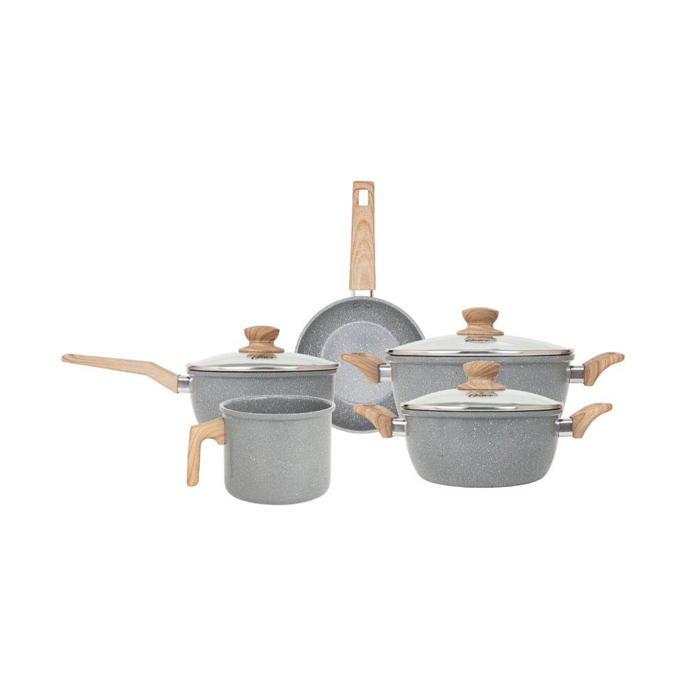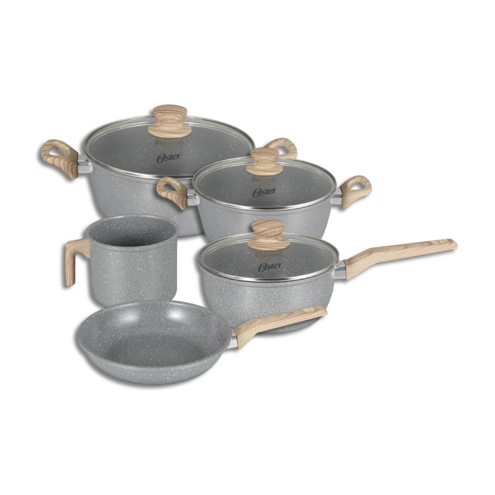 Cozinhe Com Estilo E Eficiência Com O Conjunto De Panelas E Leiteira Oster Marble Edition Dark Grey, Ideal Para Quem Busca Qualidade E Praticidade Na Cozinha.