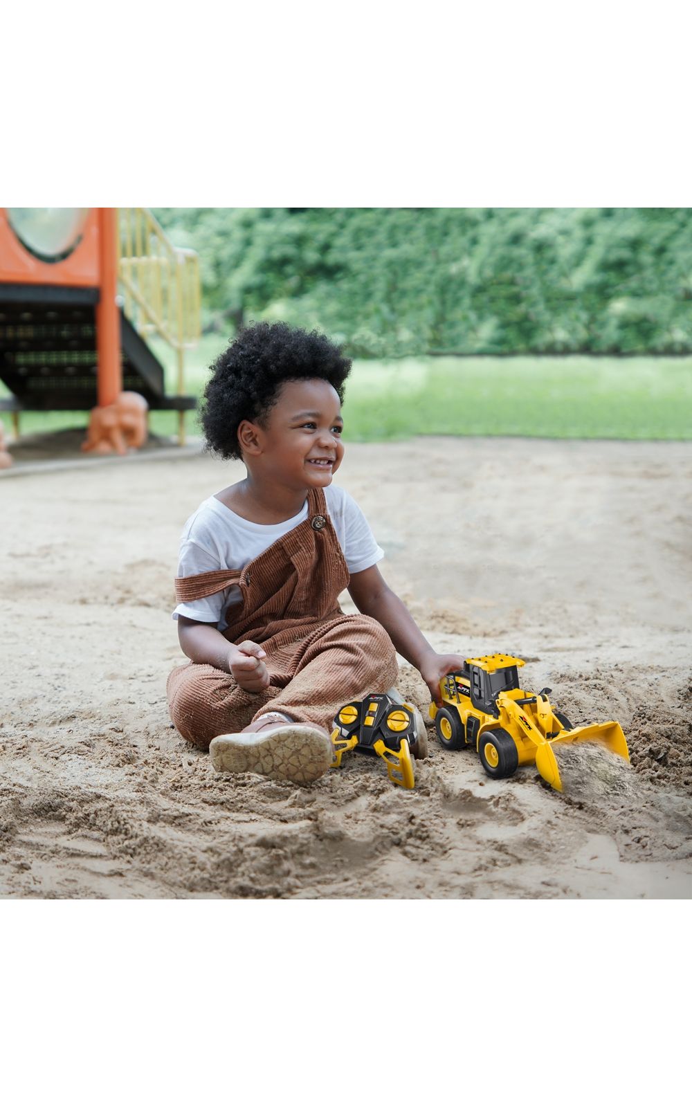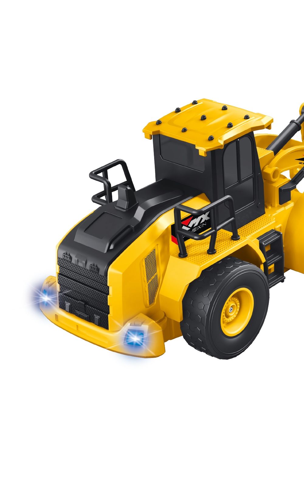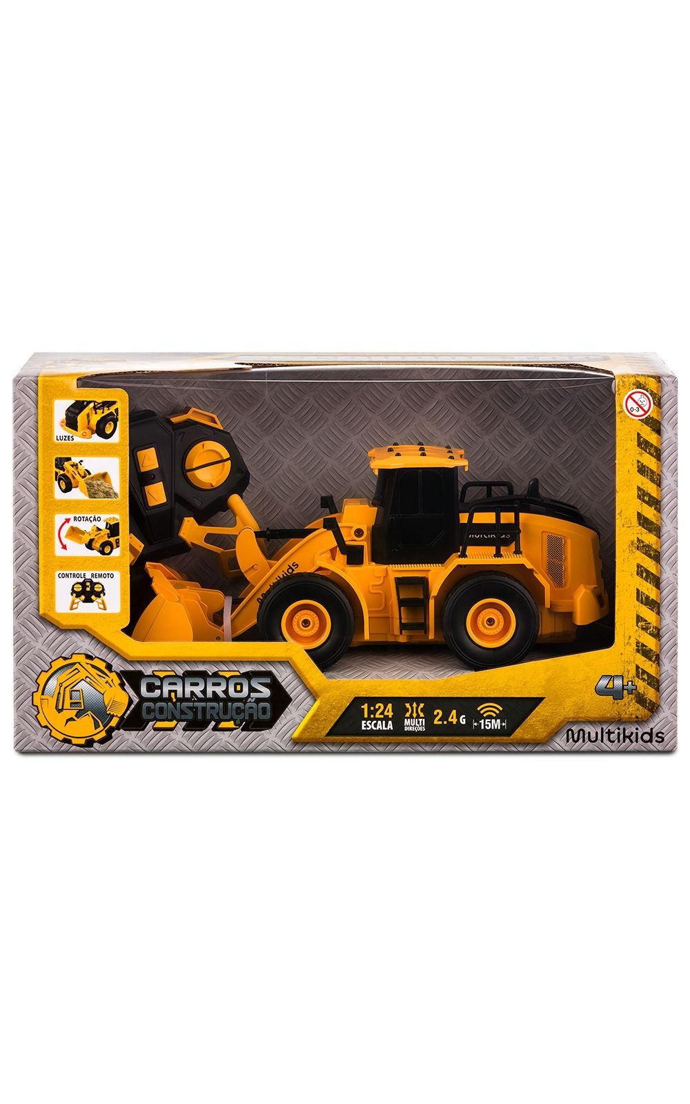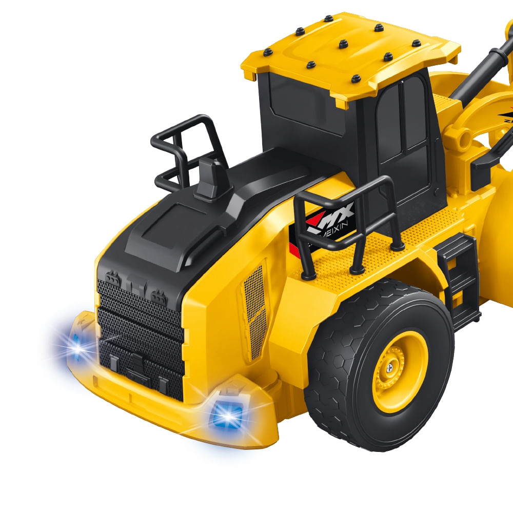 A Escavadeira de controle remoto possui escala 1:24 com elementos de design ultra detalhistas, carcaça feita em plástico resistente e metal, que replica um veículo real.
