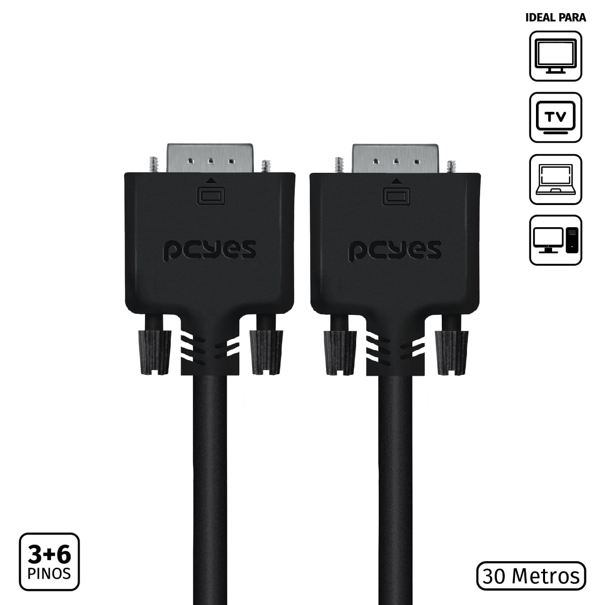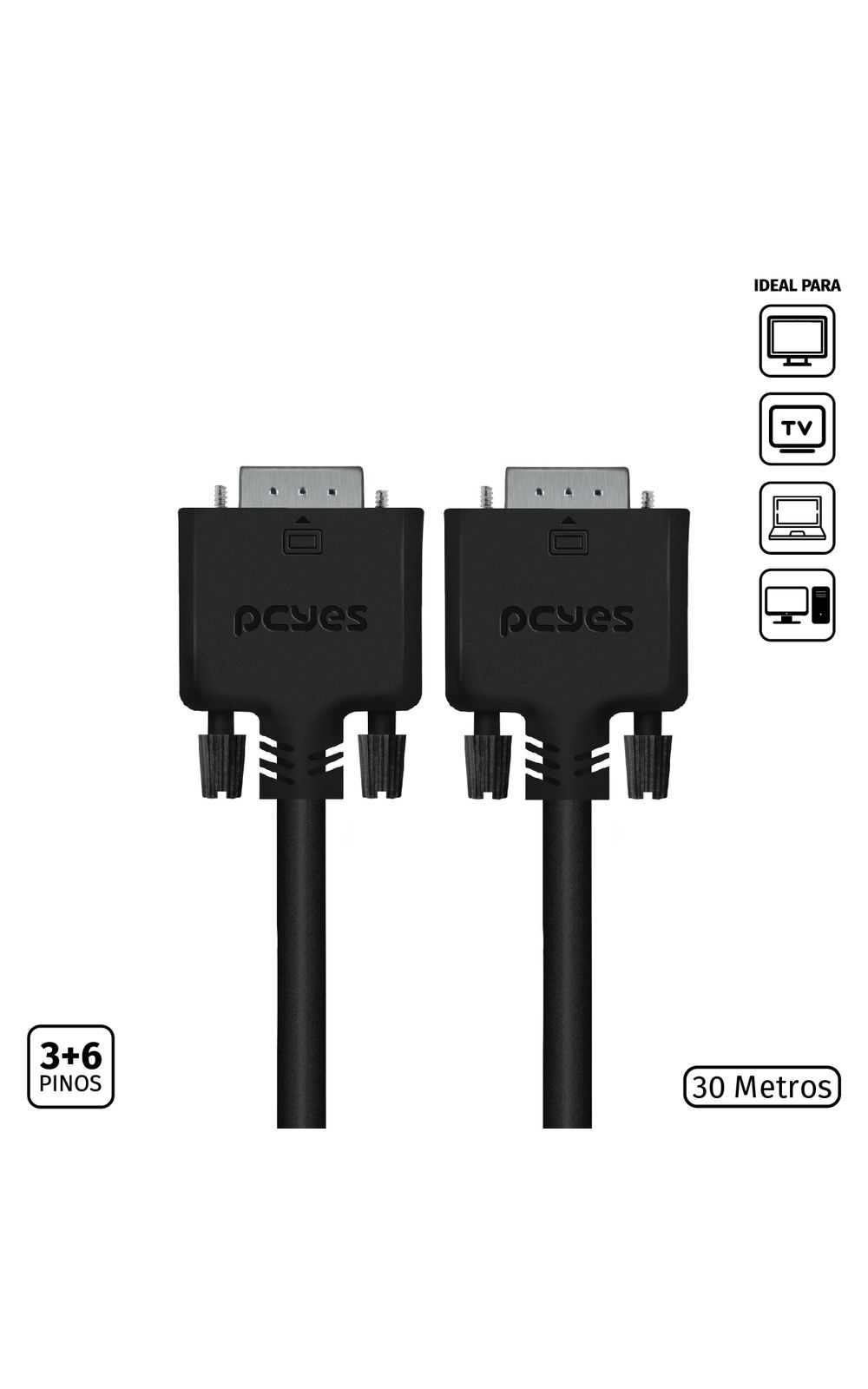 O Cabo de Vídeo VGA 3+6 15 Pinos Macho para Macho da PCYES, modelo PVM36-30, é a solução ideal para transmissão de vídeo analógico em longas distâncias. Com 30 metros de comprimento e construção em 28AWG Puro Cobre