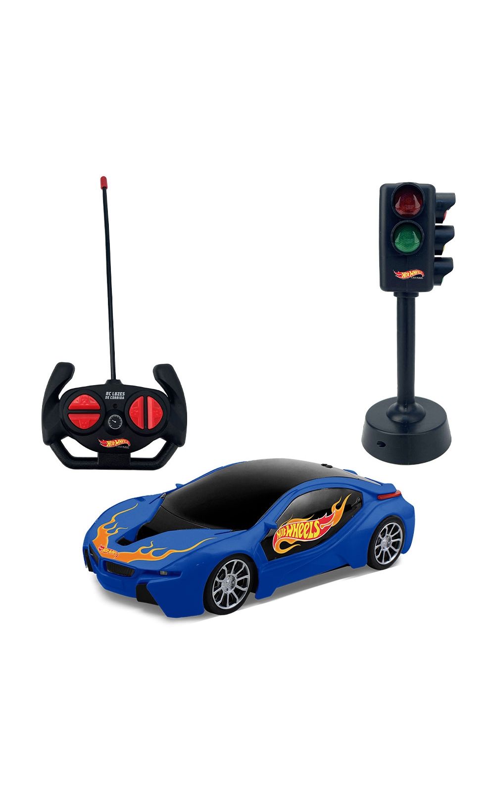 Com um visual esportivo e cheio de atitude, este carrinho de controle remoto vai conquistar os pequenos pilotos.