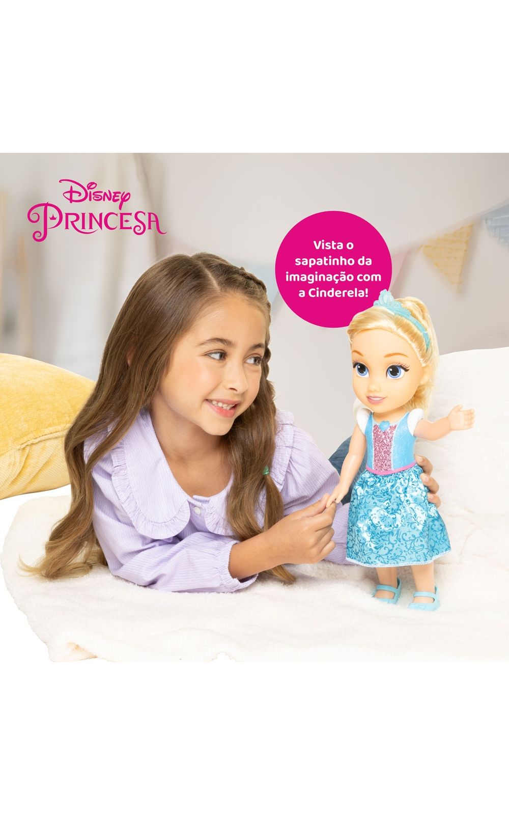 Junte-se a uma jornada mágica de aventuras e sonhos com a belíssima Boneca Disney Princesa Cinderela!