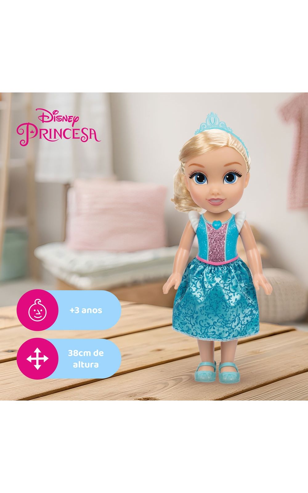 Essa linda boneca incorpora o espírito de uma Princesa da Disney, inspirando as crianças a acreditarem em si mesmas e perseguirem seus sonhos, encher seu tempo de brincadeira com encantamento! Boneca de 38cm de altura com olhos pintados e sapatos removíveis.