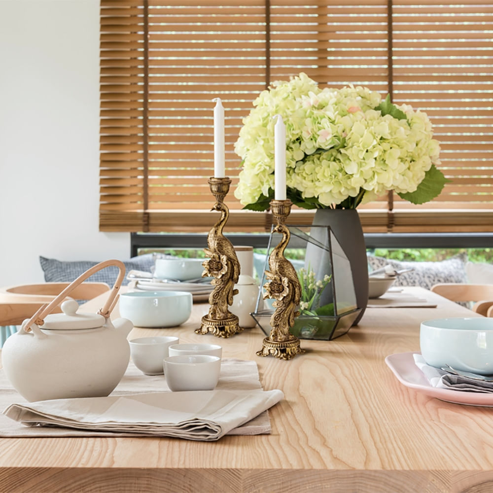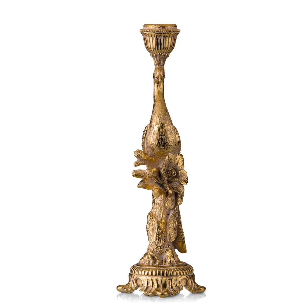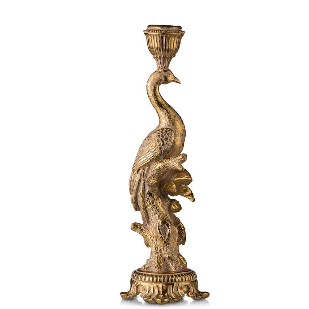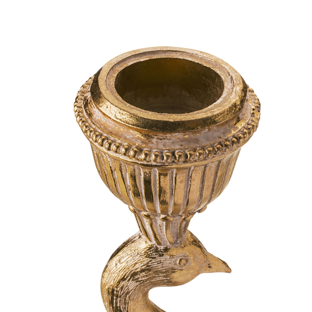 O castiçal pode ser a peça principal para dar aquele up em sua sala e mesa de jantar, seja para contrastar ou tornar aquele espaço mais exclusivo. O pavão é um símbolo de renovação, boa sorte e renascimento em muitas culturas. É feito de poliresina, material resistente (mas não a quedas, viu) e de alta qualida