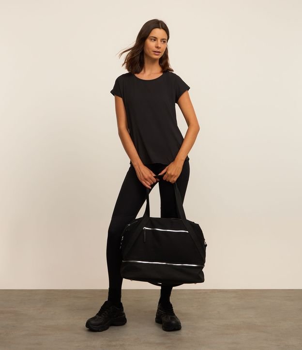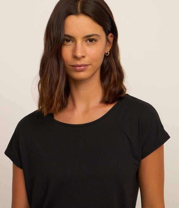 Camiseta esportiva manga curta confeccionada microfibra com decote redondo, sem estampa e com modelagem ampla.