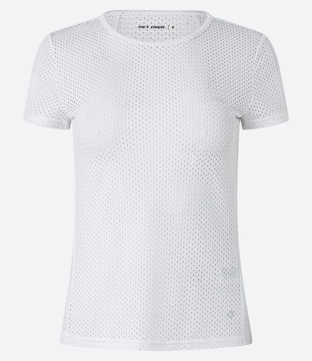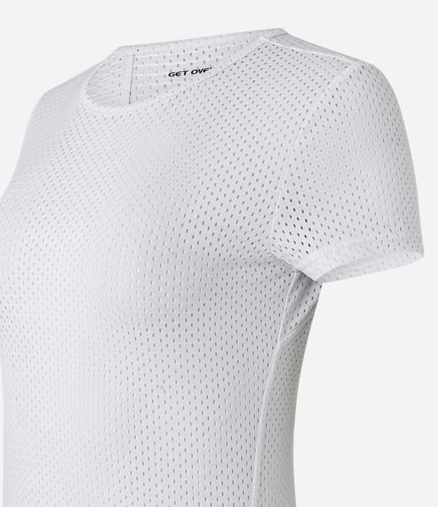 Camiseta manga curta em microfibra com textura em tela e recortes.
