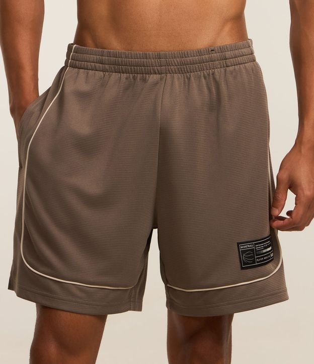 Bermuda esportiva masculina em tecnologia dry. Possui cós elástico, com cordão interno, ajustável, etiqueta aplicada com estampa de basquete, friso contrastante e furinhos para maior respirabilidade.