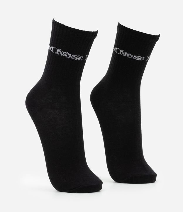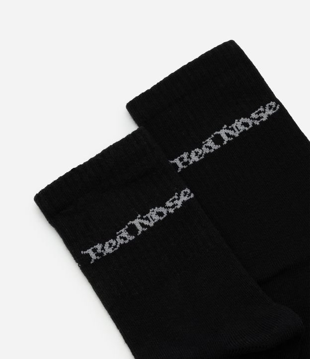 Meia masculina confeccionada em algodão mais sustentável, modelo cano alto, kit com 02 pares, estampa lettering Red Nose.
