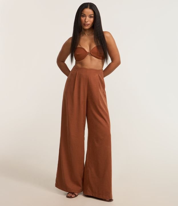 Cropped tomara que caia com busto arredondado e pespontado, tira e abertura frontal, sem estampa e confeccionado em crepe.