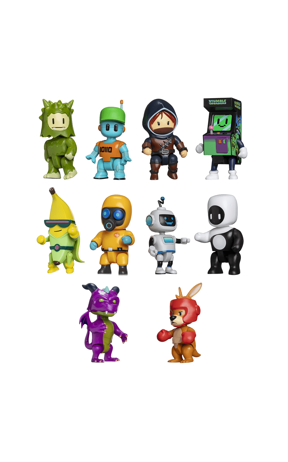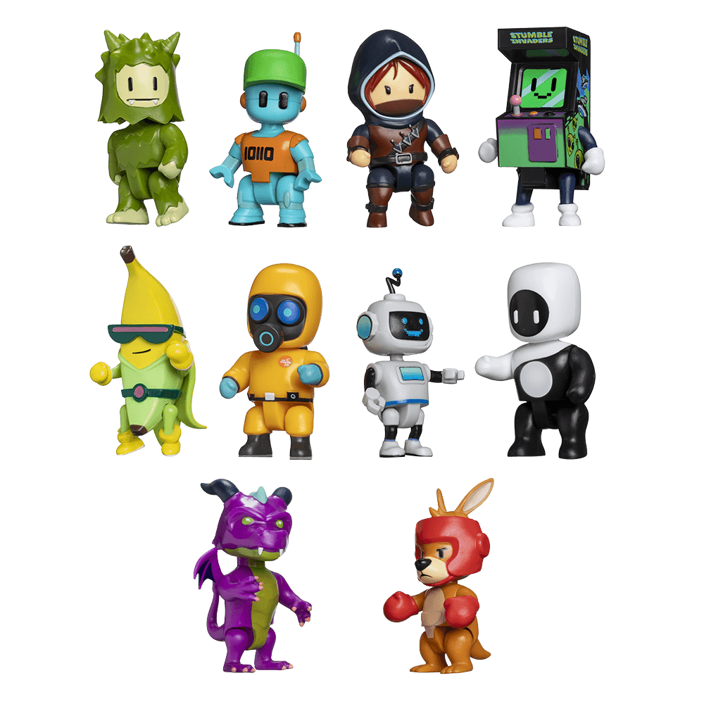 Com 7.5cm de pura diversão, cada pack contém 1 personagem articulado da sua skin preferido de Stumble Guys.