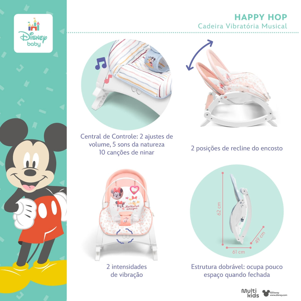 Cadeira de Descanso e Balanço vibratória Musical Happy Hop: Diversão e Conforto em um único produto para o seu Bebê!