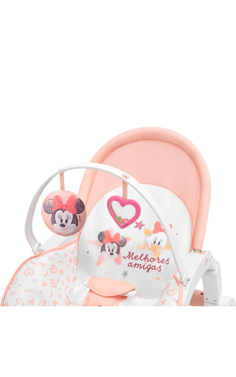 Com uma barra de brinquedos removível e dois brinquedos de