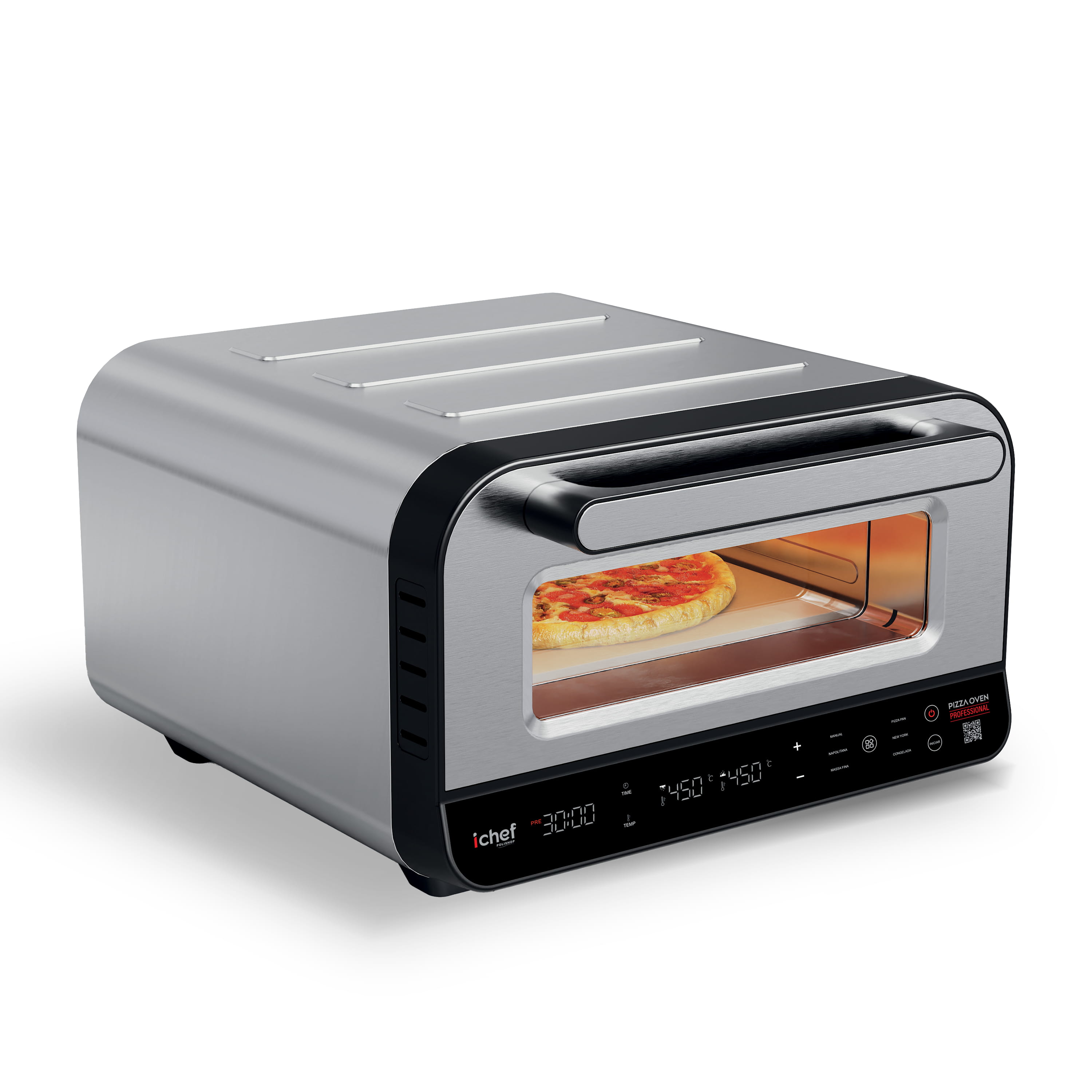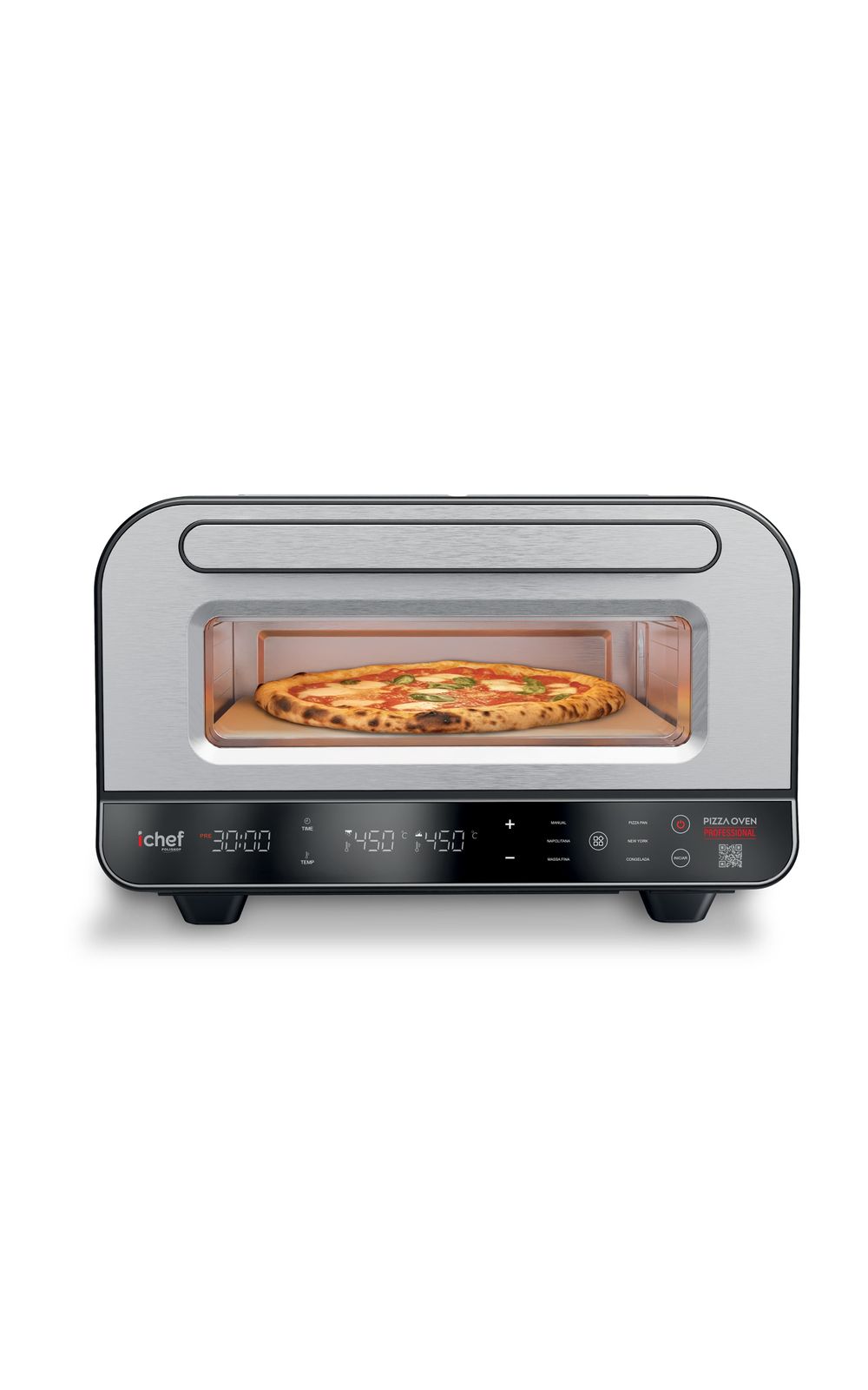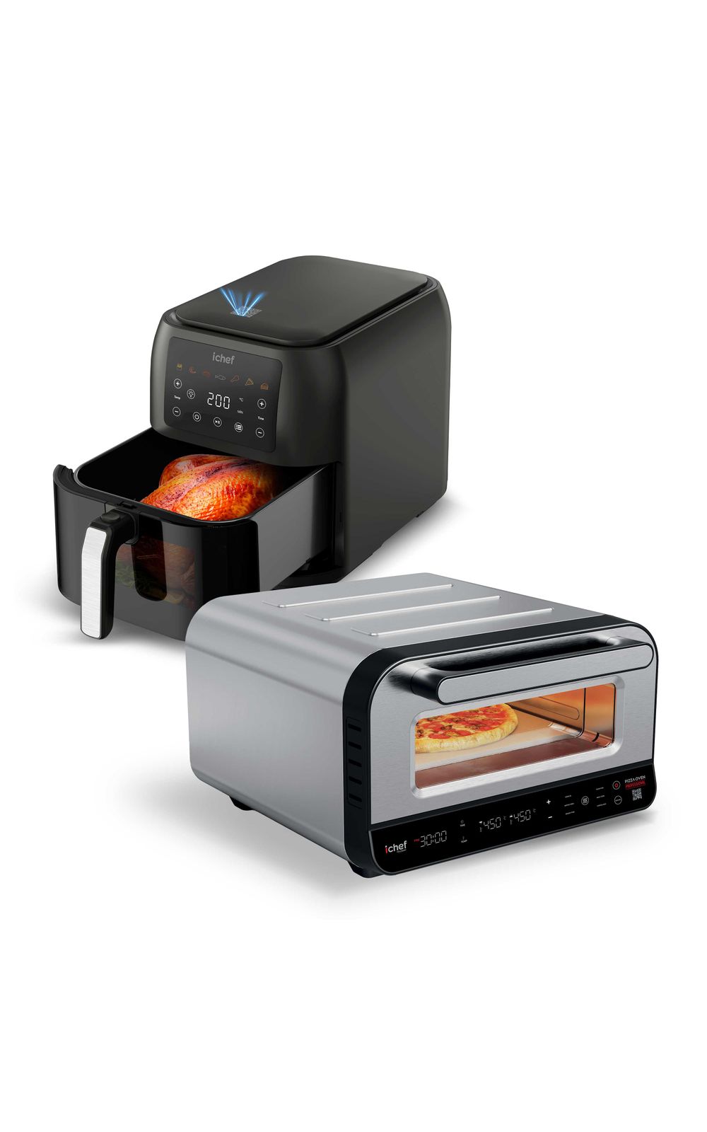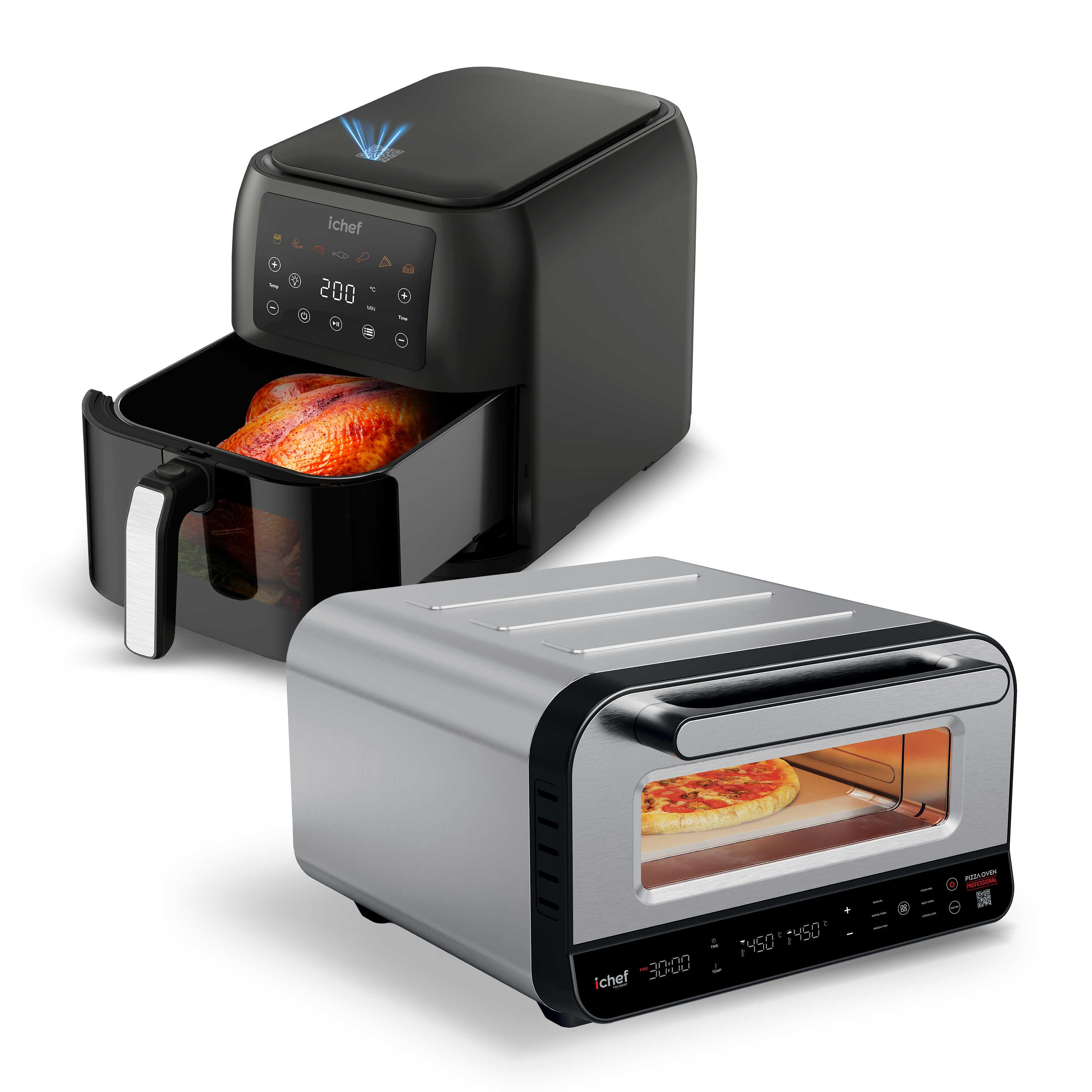 Capacidade: Pizza Oven: 17 litros | Airfryer: 8 LitrosCor: Pizza Oven: Prata | Airfryer: PretoFrequência: Pizza Oven: 60Hz | Airfryer: 60HzFunções: Airfryer: Funções Pré-Programadas: Batatas, Frutos do Mar, Filés, Peixe, Pedaços de Frango, Pizza e BoloGarantia do Fabricante: 12 mesesIndicações: Pizza Oven: MODOS (TIMER, SLEEP, TURBO...ETC): Timer de 1 a 30 minutosInformações Importantes: Pizza Oven: Niveis de Temperatura: 80° a 450°CItens Inclusos: 01 Forno de Pizza Oven01 Pedra Refratária01 Espátula para pizza01 Manual de Instruções1 Fritadeira elétrica Airfryer Max Space 8L1 Manual de InstruçõesMarca: IchefMaterial: Pizza Oven: Plástico, metal e borrachaAirfryer: Plástico, metal, borracha.Medidas (Alt x Comp x Larg): Pizza Oven: 48,8 x 44 x 28,4 cm | Airfryer: 30 x 27 x 46 cmOutros Detalhes: Airfryer: ILUMINAÇÃO: Botão de iluminação internaPerguntas Frequentes: O forno elétrico consome muita energia