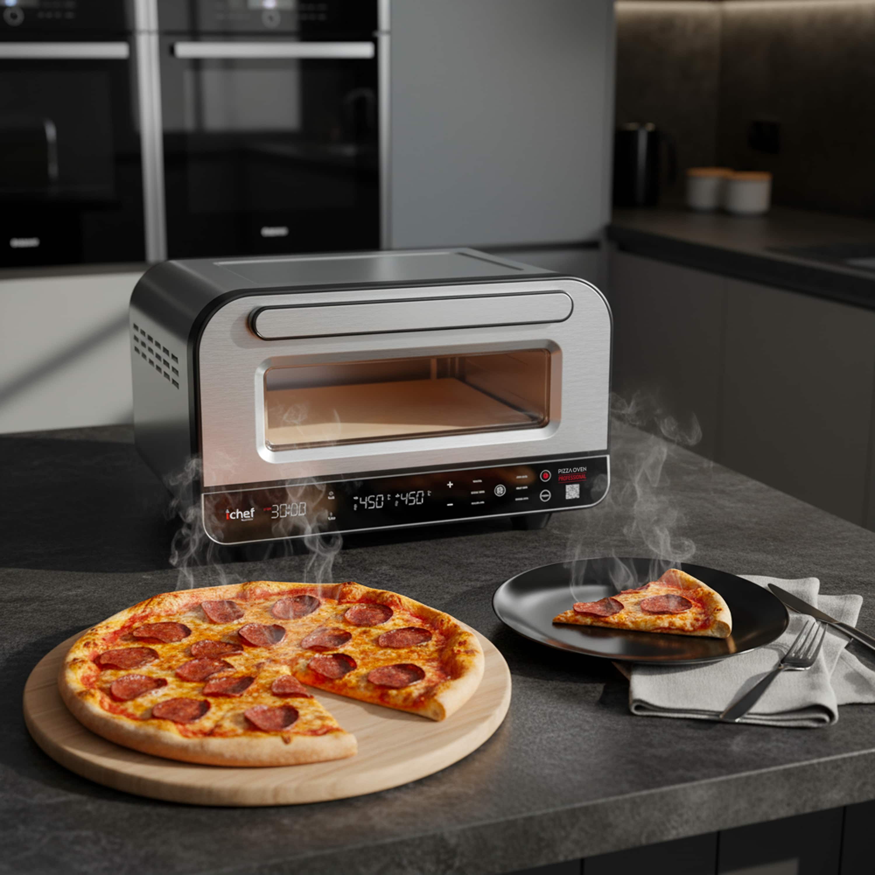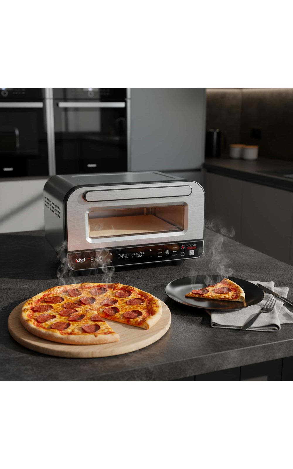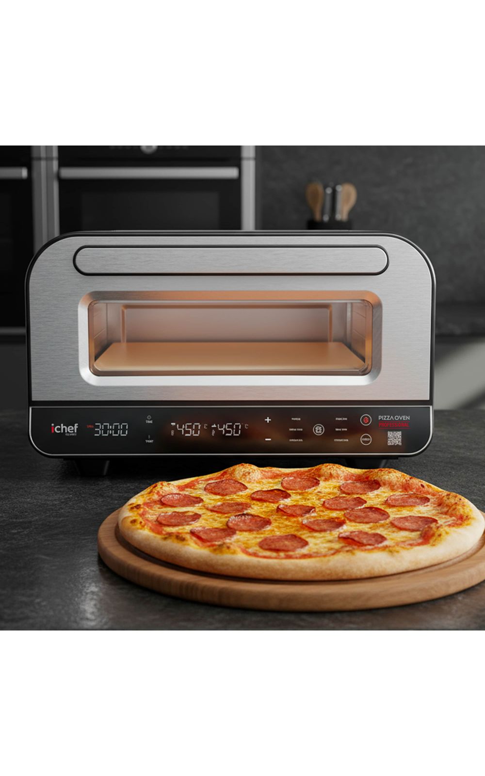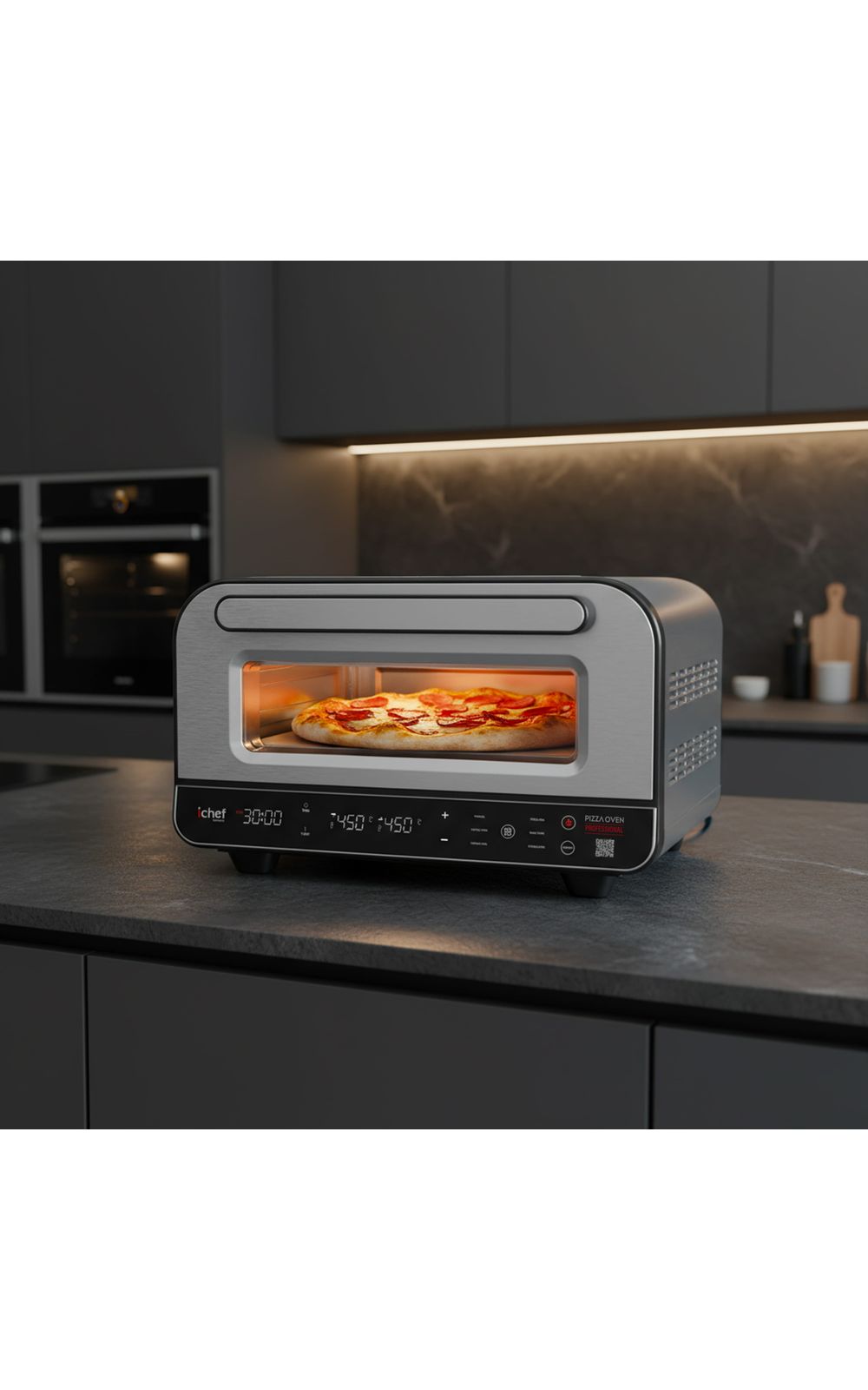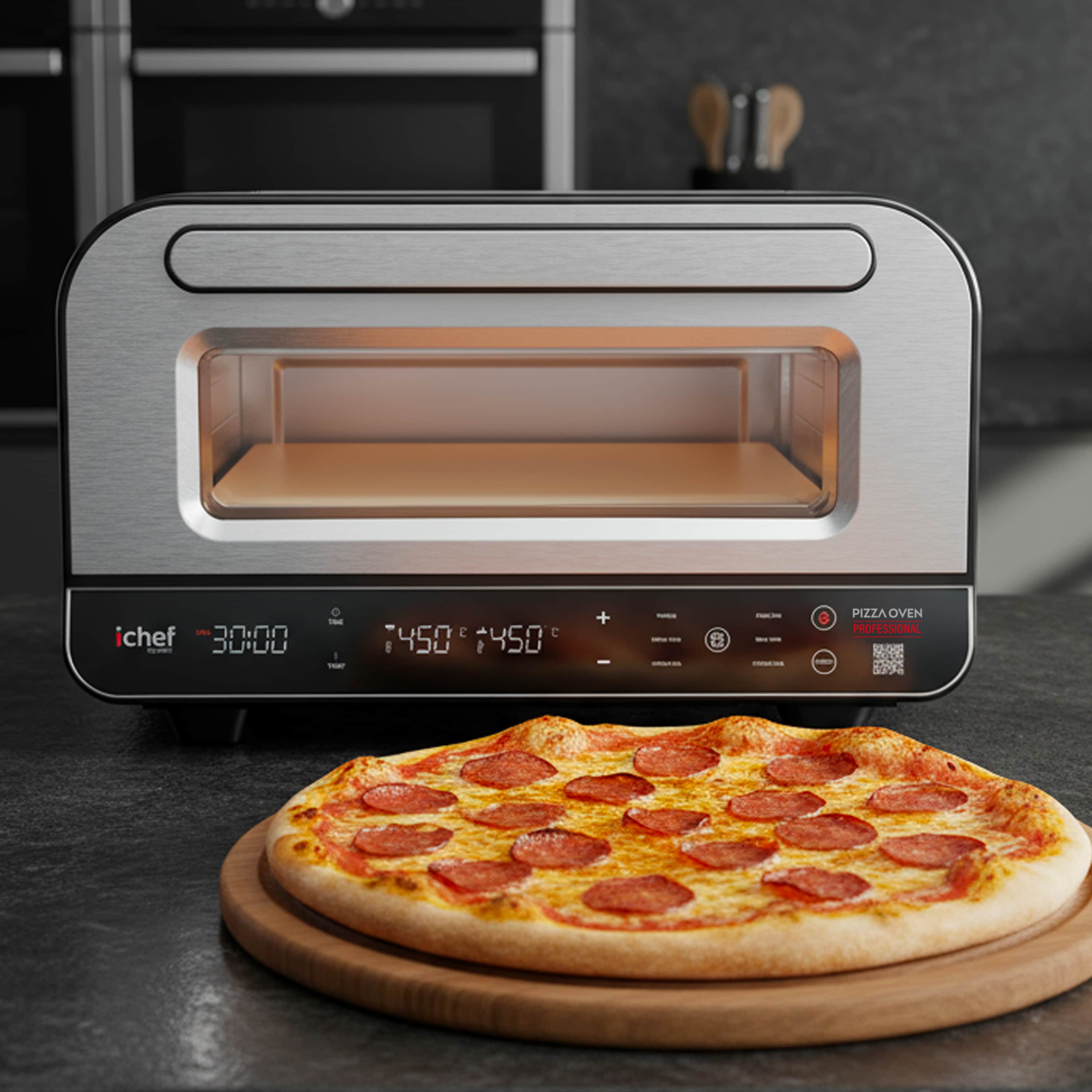 Capacidade: Pizza Oven: 17 litros | Airfryer: 8 LitrosCor: Pizza Oven: Prata | Airfryer: PretoFrequência: Pizza Oven: 60Hz | Airfryer: 60HzFunções: Airfryer: Funções Pré-Programadas: Batatas, Frutos do Mar, Filés, Peixe, Pedaços de Frango, Pizza e BoloGarantia do Fabricante: 12 mesesIndicações: Pizza Oven: MODOS (TIMER, SLEEP, TURBO...ETC): Timer de 1 a 30 minutosInformações Importantes: Pizza Oven: Niveis de Temperatura: 80° a 450°CItens Inclusos: 01 Forno de Pizza Oven01 Pedra Refratária01 Espátula para pizza01 Manual de Instruções1 Fritadeira elétrica Airfryer Max Space 8L1 Manual de InstruçõesMarca: IchefMaterial: Pizza Oven: Plástico, metal e borrachaAirfryer: Plástico, metal, borracha.Medidas (Alt x Comp x Larg): Pizza Oven: 48,8 x 44 x 28,4 cm | Airfryer: 30 x 27 x 46 cmOutros Detalhes: Airfryer: ILUMINAÇÃO: Botão de iluminação internaPerguntas Frequentes: O forno elétrico consome muita energia