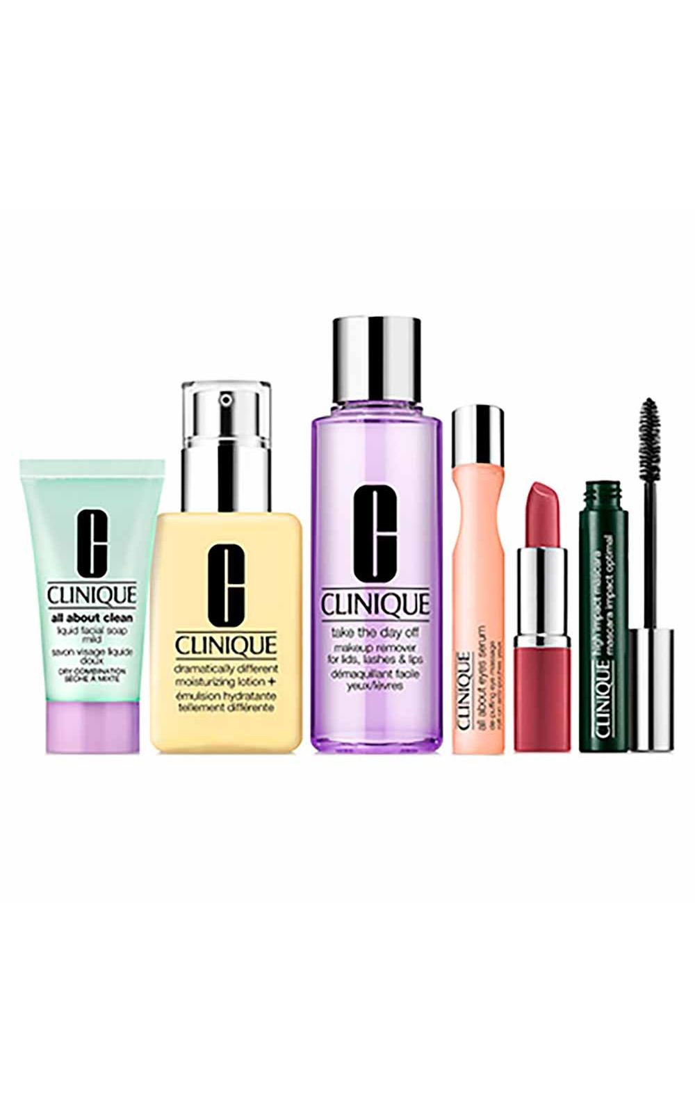 Kit Clinique - Sabonete Líquido + Hidratante + Demaquilante + Máscara de Cílios + Sérum + Batom - nenhuma
