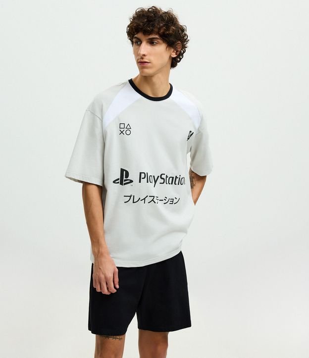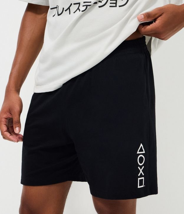 Pijama curto masculino adulto confeccionado em meia malha de algodão mais sustentável, composto por camiseta de manga curta com gola redonda, modelagem boxy e estampa frontal licenciada PlayStation, acompanhada de short liso com cós elástico, ideal para conforto e estilo nos momentos de descanso.