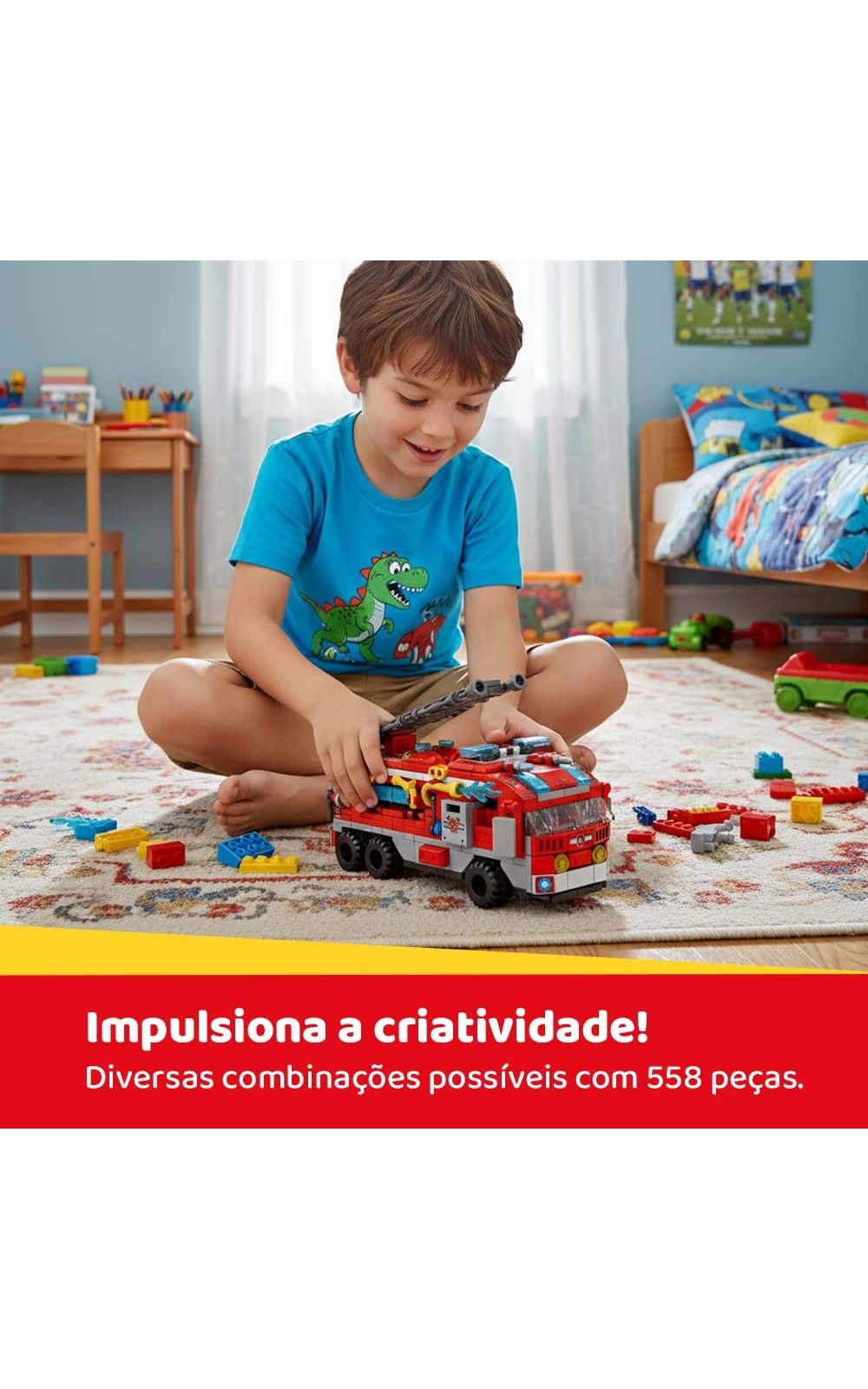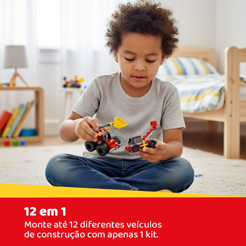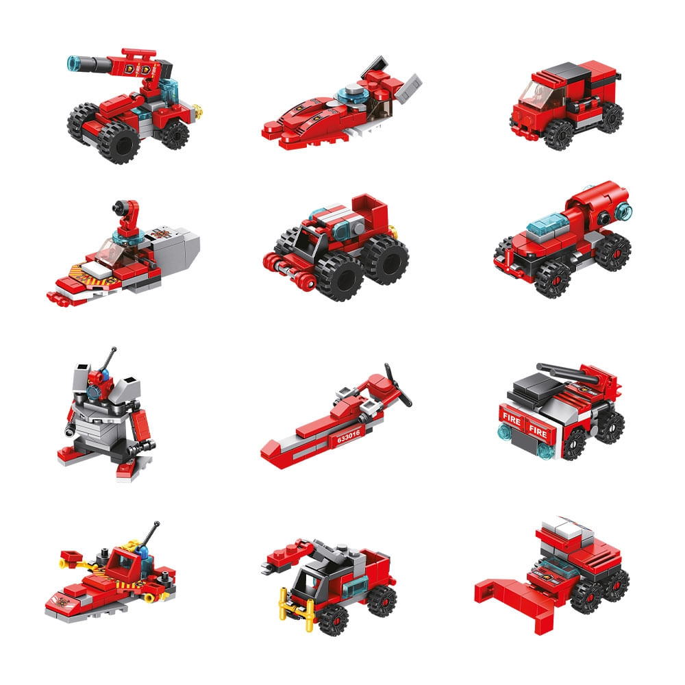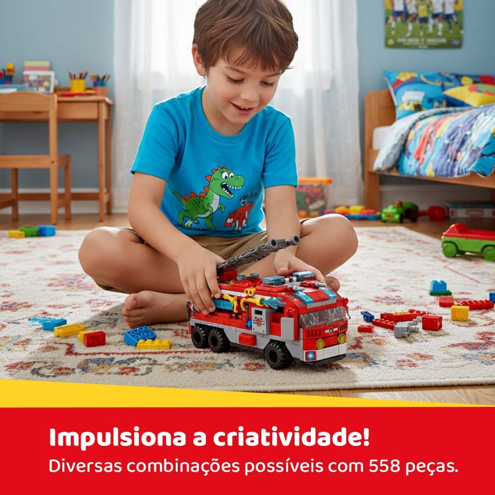 Diversas peças para montar os diferentes cenários e auxiliar para o desenvolvimento da imaginação. coordenação e novos desafios.